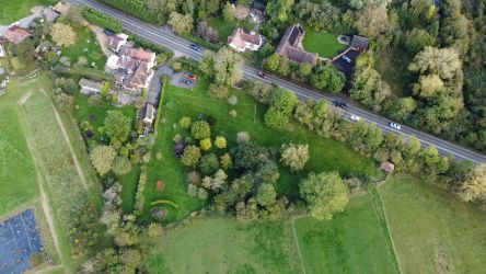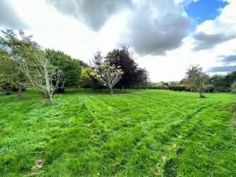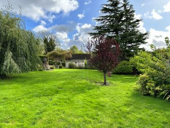 The mature garden with unspoiled countryside views includes trees, shrubs, and inviting seating areas. An orchard with a variety of mature trees complements the property. Please note the public footpath leading to the lower section of the plot.
