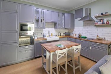 Lounge and Kitchen areas, Bathroom and Bedroom with fitted wardrobes. Sash windows, electric heating.